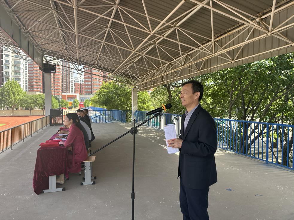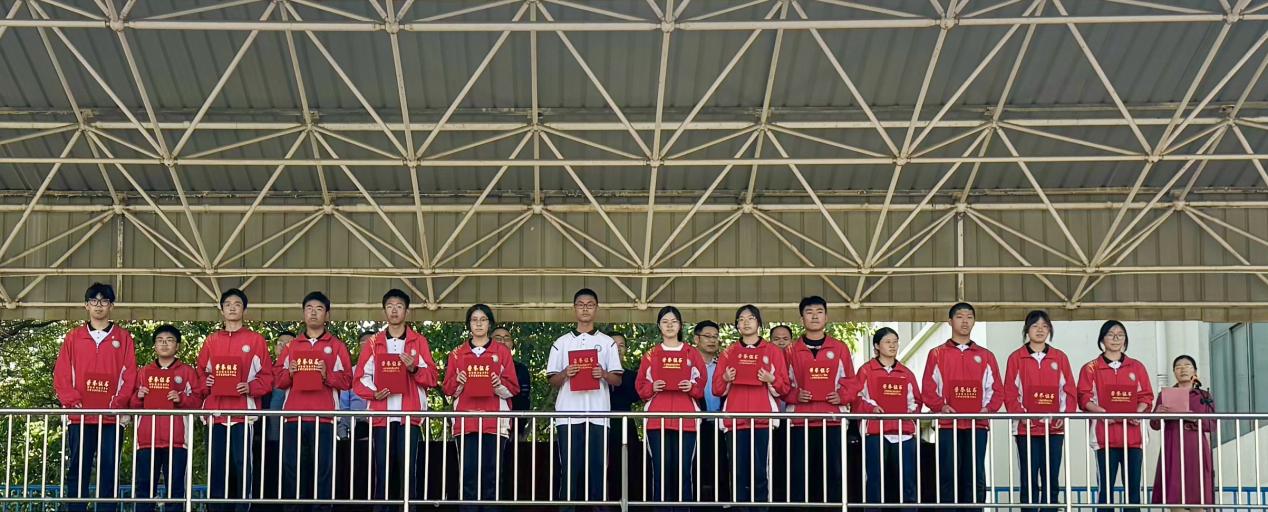 活动第一阶段在操场进行。年级副主任周敏宣读优秀学生表彰名单,优秀学生代表上台领奖。