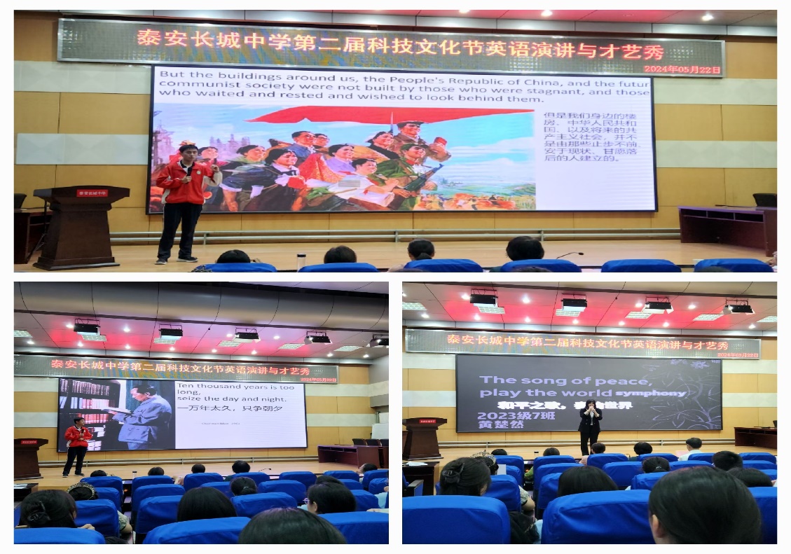 演讲The song of peace, play the world,将同学们对和平之歌奏响世界的美好祝愿表现得淋漓尽致;《我们选择为未来而努力》中,同学们用铿锵的语言表达着新时代青年以昂扬向上的斗志迎接未来挑战的坚定信念;《新中国式与文化自信》探讨新中式风格及其体现出的文化自信,强调在全球交流中保持开放心态、尊重多元文化价值的重要性。