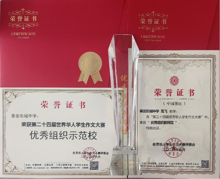 9月27日,泰安市侨联成功举办“侨手著文章·联心颂华夏”第 24 届世界华人学生作文大赛颁奖仪式及总结交流会,德赢天下_www.vwin01.com在此次大赛中表现突出,荣获“优秀组织示范校”称号。