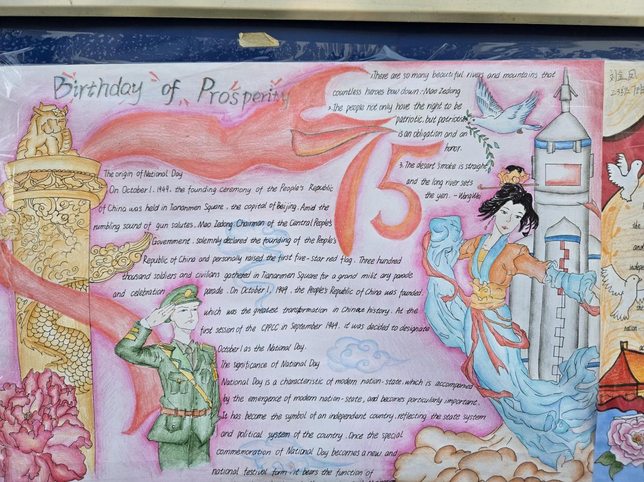 爱国情怀,薪火相传。通过手抄报的制作与展示,同学们不仅提高了英语应用能力,更体现出对祖国的热爱与祝福,爱国情怀在校园里生根发芽。
