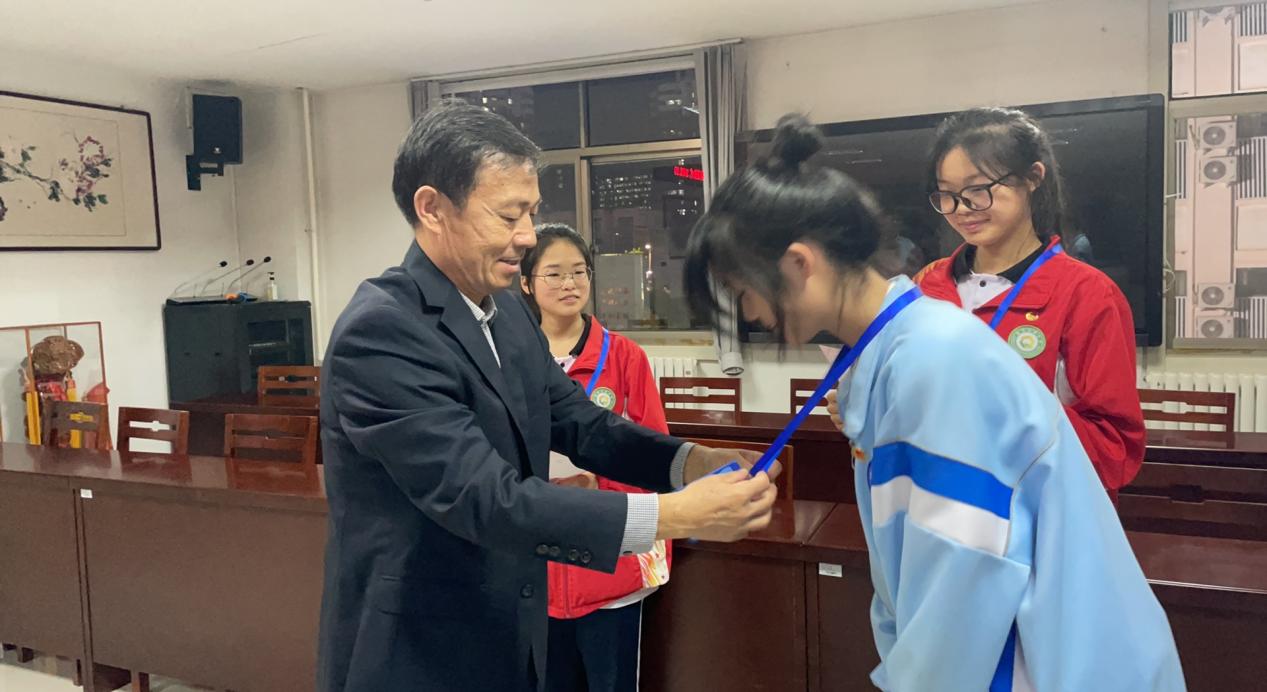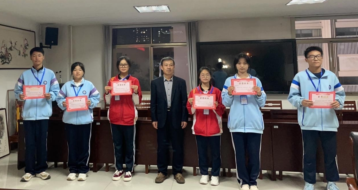 刘校长为6位学生校长助理颁发聘书和工作牌,并合影留念。