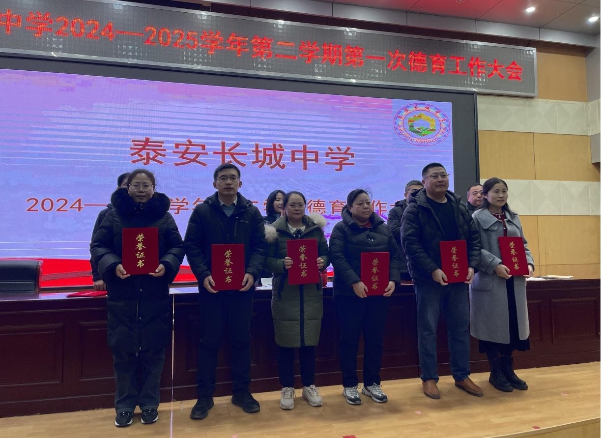 政教处主任王磊宣读了上学期班级量化先进班主任,并依次颁奖,对在过去一学期工作中表现出色的班主任予以表彰,激励全体德育工作者向先进学习。