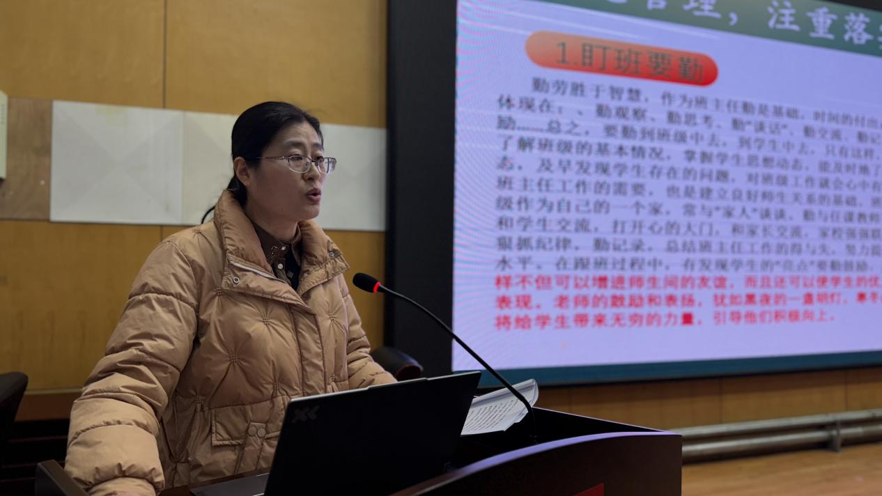高三年级副主任周敏、高二年级副主任裴志强、高一年级副主任侯衍莉作为班主任代表进行工作交流发言。他们结合自身班级管理经验,分享了在德育工作中的宝贵经验和创新做法,为其他班主任提供了有益借鉴。