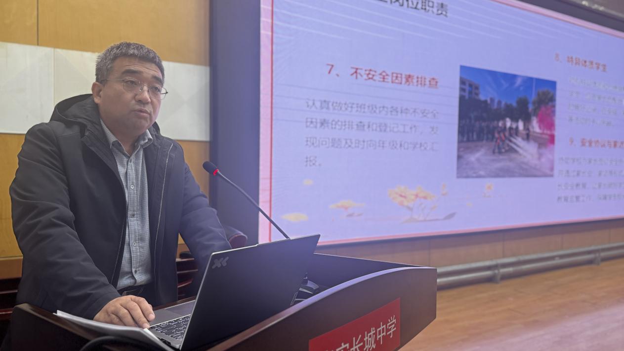 副校长周晓亮明确年级主任和班主任的安全岗位职责、学生安全员的重要意义、1530安全教育模式及本学期安全重点工作月历;强调班主任是学生安全教育最重要的一环,关乎学生个体安全,更影响班级凝聚力和学校整体风貌,希望班主任不断提高自身的安全管理能力,以高度的责任心和使命感,为学生的安全成长保驾护航。
