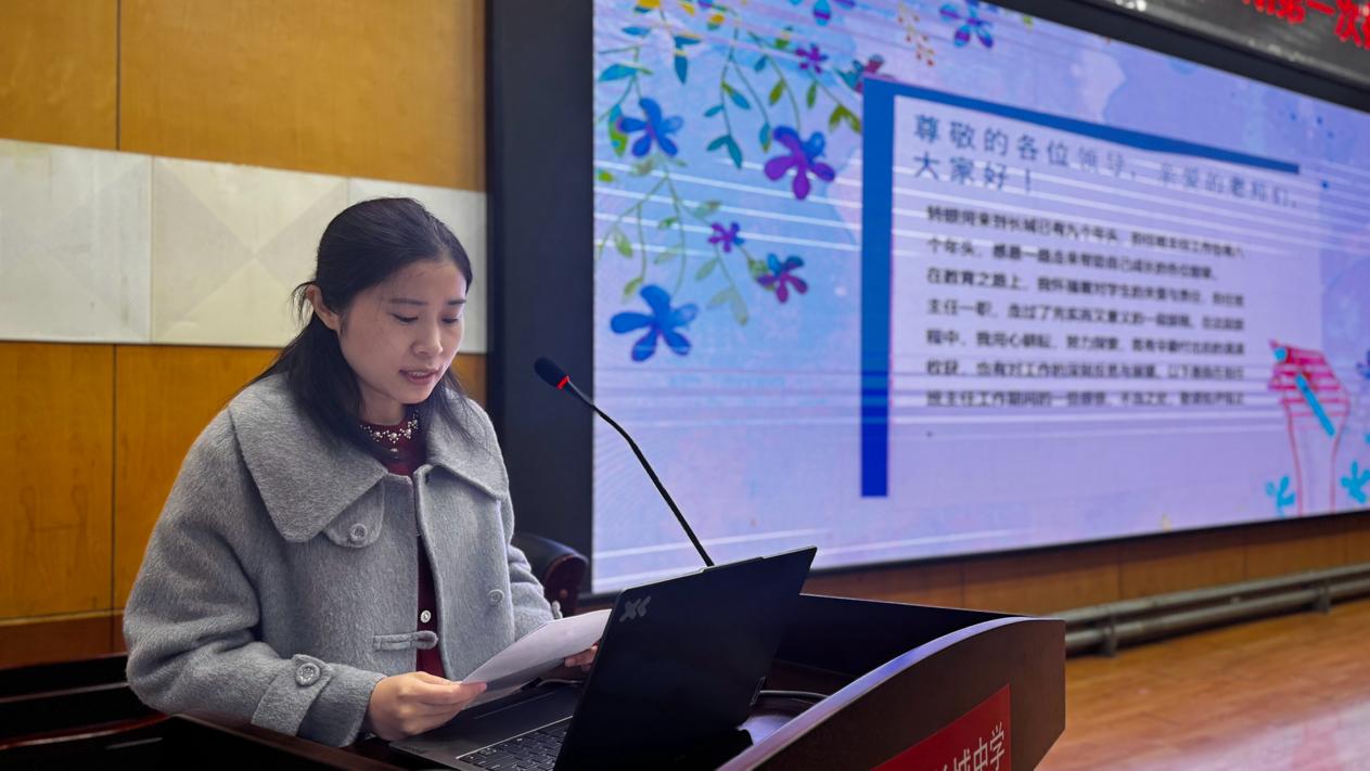 副校长陈佳敏充分肯定了德育工作取得的成绩,表态学校将全方位为班主任创造更舒适的工作环境,为班主任成长搭建平台、铺好道路;要求班主任老师做好学校形象的代言人、安全底线的守护者、高质量发展的践行者。