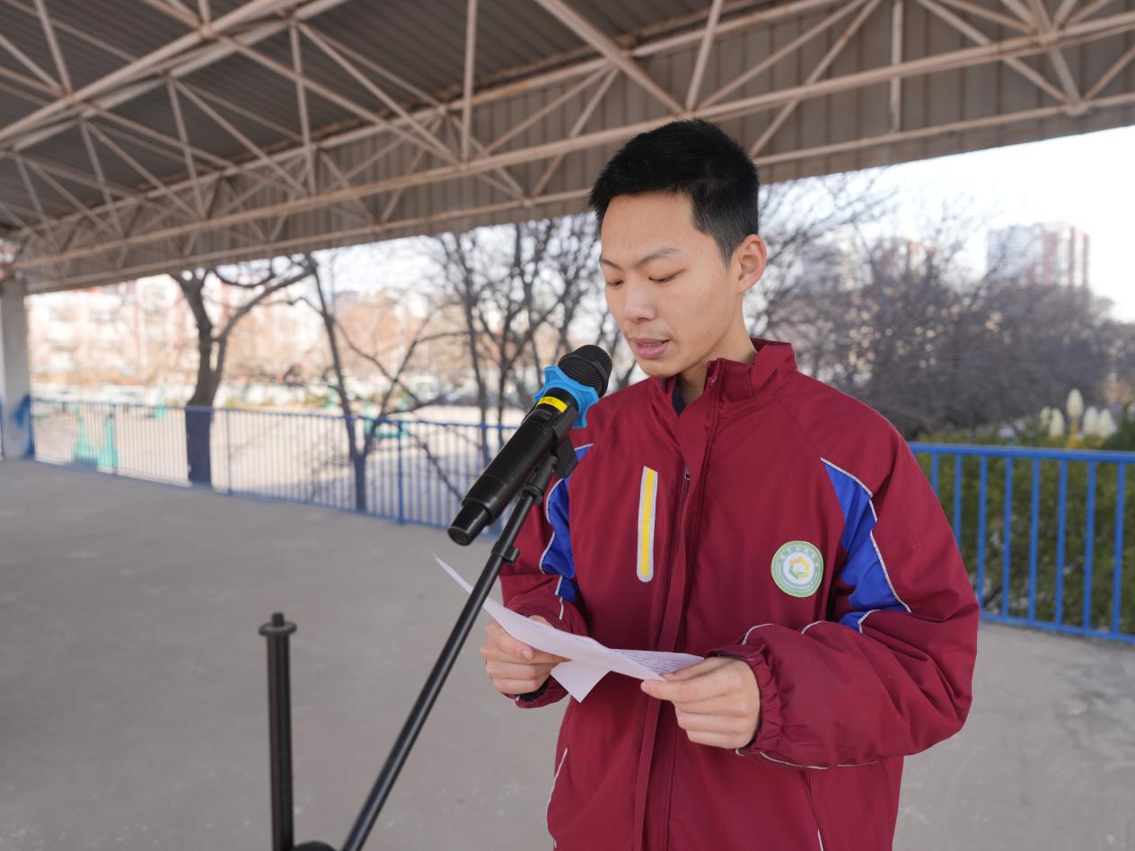 学生代表王嘉扬在发言中首先对辛勤耕耘在教育教学一线、陪伴学生成长的领导、老师们致以最诚挚的感谢,并以“有志者,事竟成,破釜沉舟,百二秦关终属楚;苦心人,天不负,卧薪尝胆,三千越甲可吞吴”倡议同学们有恒心、有毅力,不断向成功迈进,绽放属于自己的耀眼光芒。