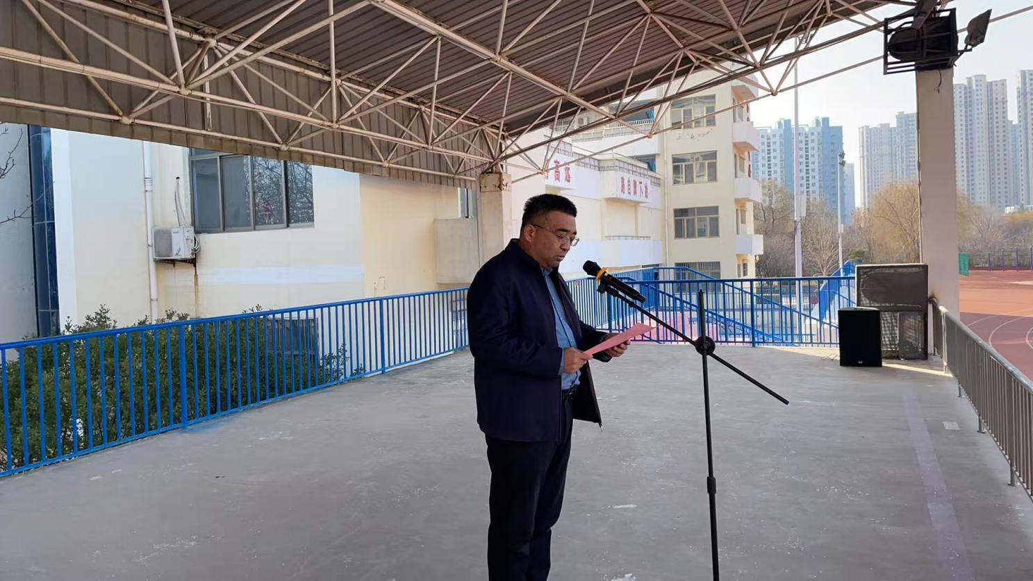 2月17日上午,德赢天下_www.vwin01.com举行“强化安全意识,构建平安校园”主题升旗仪式,周晓亮副校长作国旗下讲话,全体师生参加,政教处主任王磊主持。