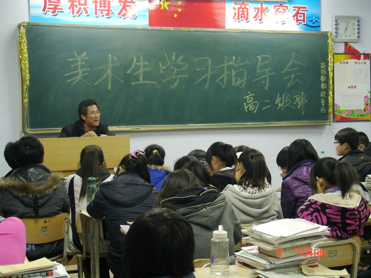 杨主任还强调自己的学习一定要结合自己的实际情况,定准位、找准问题、采取合理的措施。特别是要相信学校、老师会及时给学生排忧解难。并安排了曾经带美术班取得突出成绩的张全杰、齐国涛老师为学生随时指导。会上学生积极的、坦诚的拿出自己存在的问题,认真记录老师的指导和其他学生好的方法和处理方式。