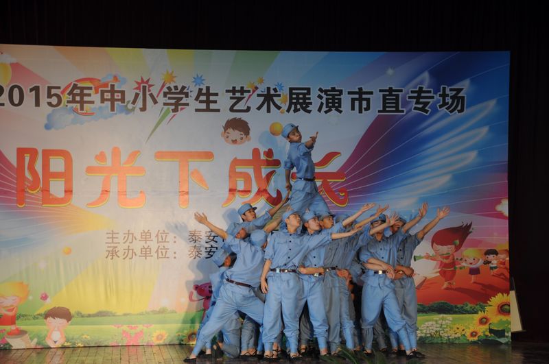 5月23日上午,泰安市2015年中小学生艺术展演活动在泰安一中虎山路校区礼堂举行,www.vwin5.com选送的男子群舞《人民英雄纪念碑》、女子群舞《又见沂蒙》、无伴奏小合唱《生如夏花》三个节目表现优异,舞蹈作为www.vwin5.com的传统特色项目,在众多节目中表现突出,获得了台下评委和观众的一致好评。