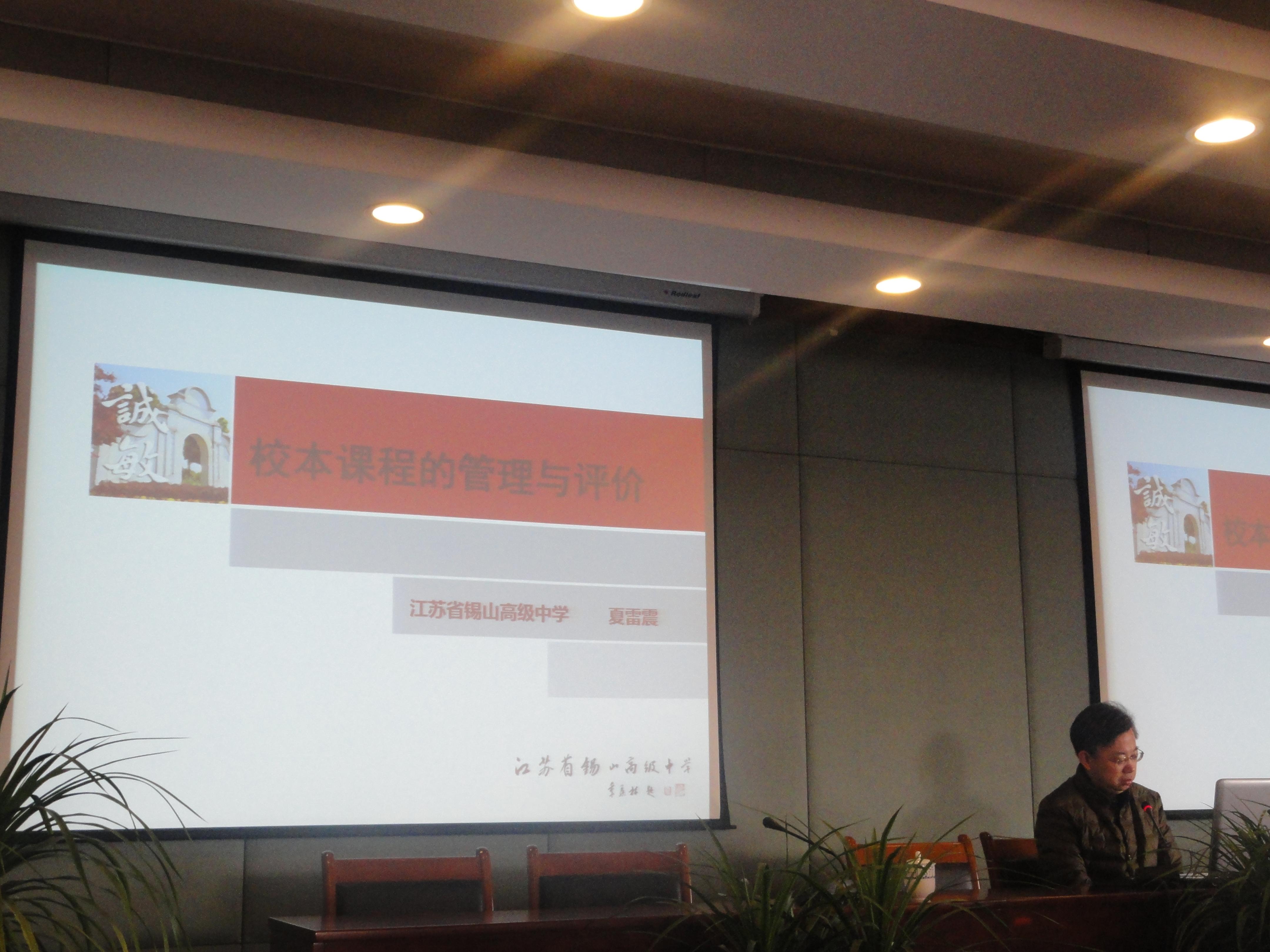 5日上午,我们聆听了锡中副校长夏雷震的报告《校本课程的管理与评价》。夏校长先是列举了学校各职能部门在校本课程开发与实施中的地位与承担的任务。然后展示了原《普通高中课程方案》和正在拟定中的新《高中课程方案》,指出了必修课程、选修I课程和选修II课程学分分值的变化、课程内容范畴,特别强调了伴随新高考制度的出炉,校本课程的相应变化及其重要作用。