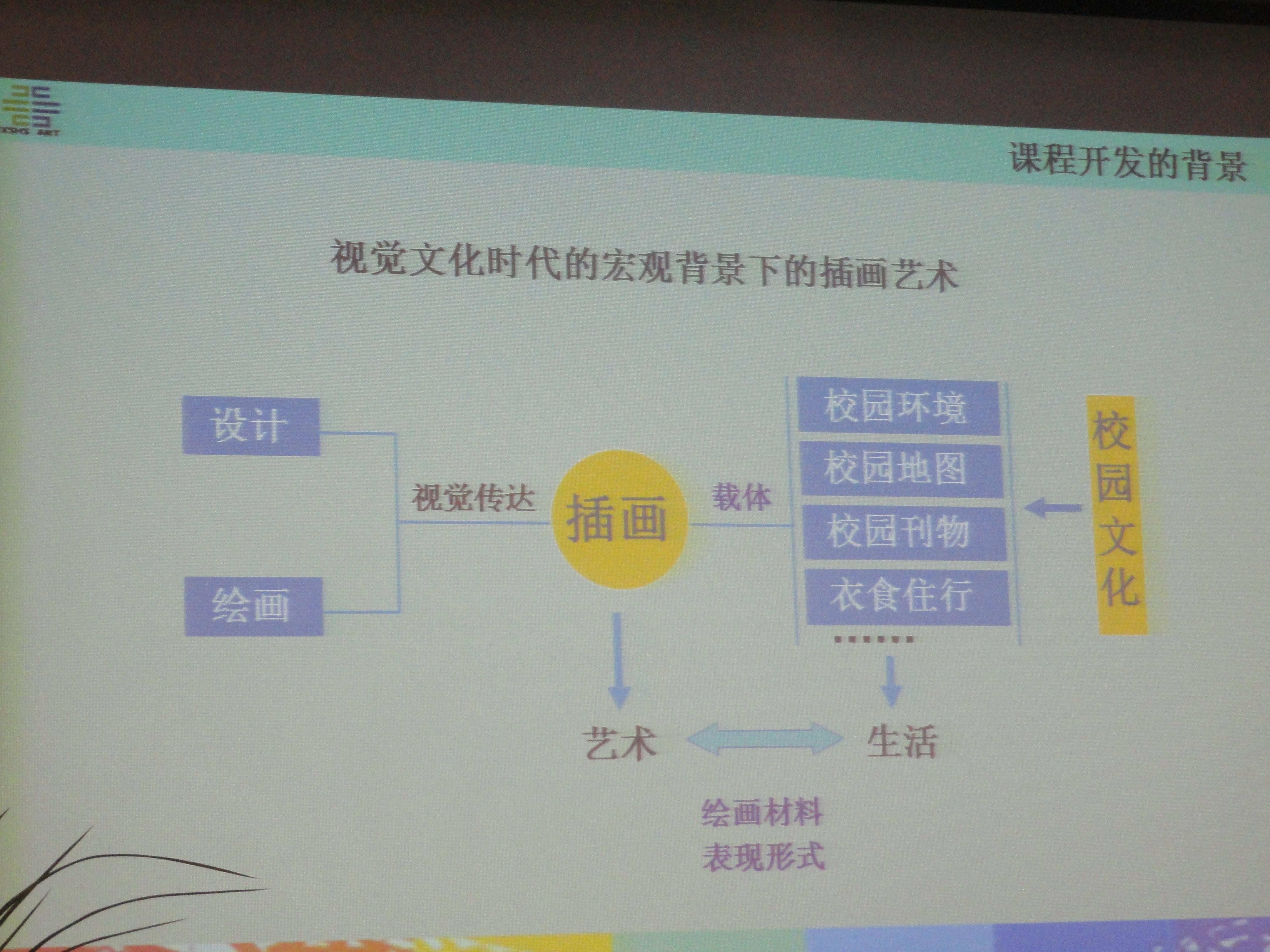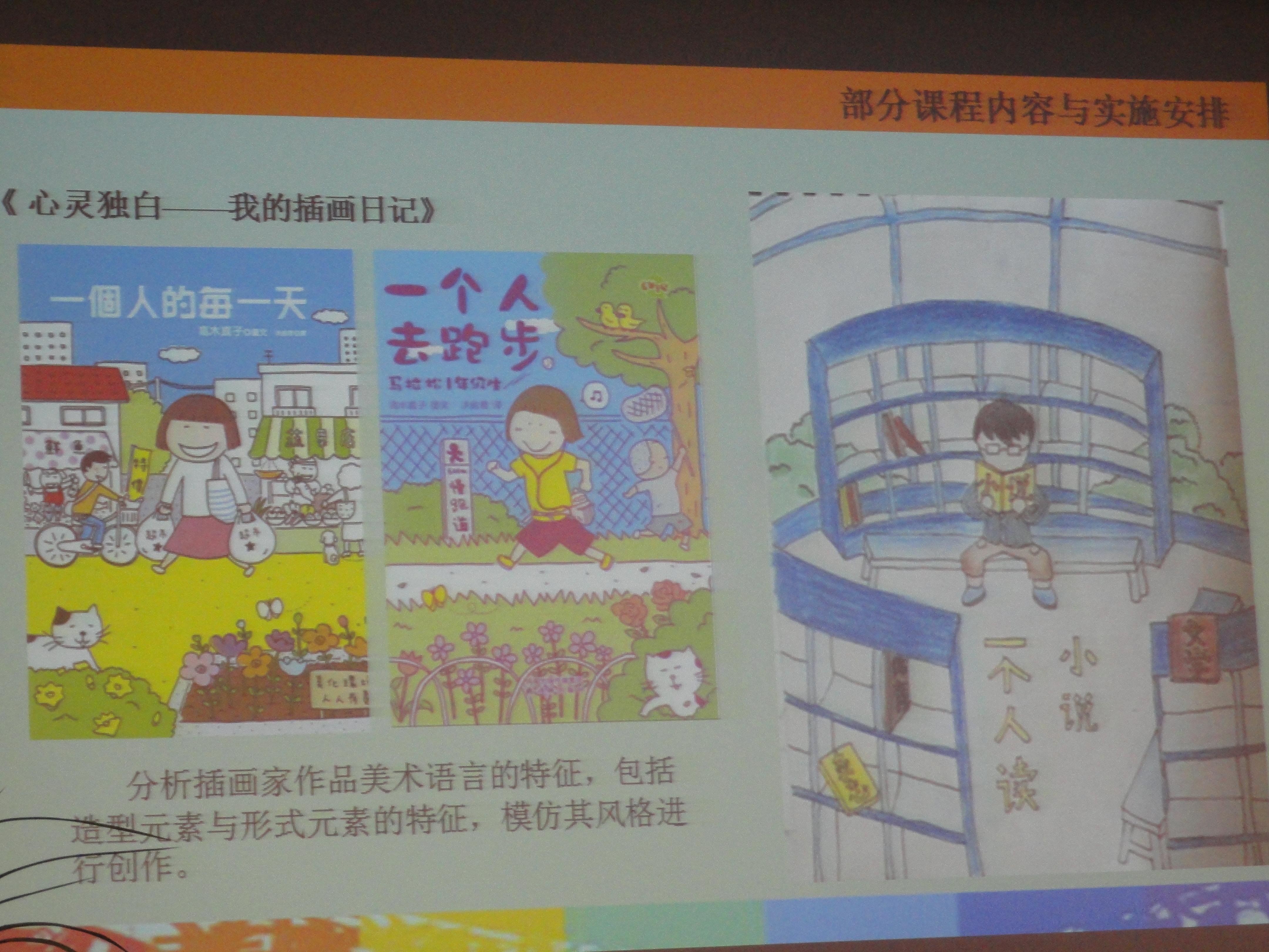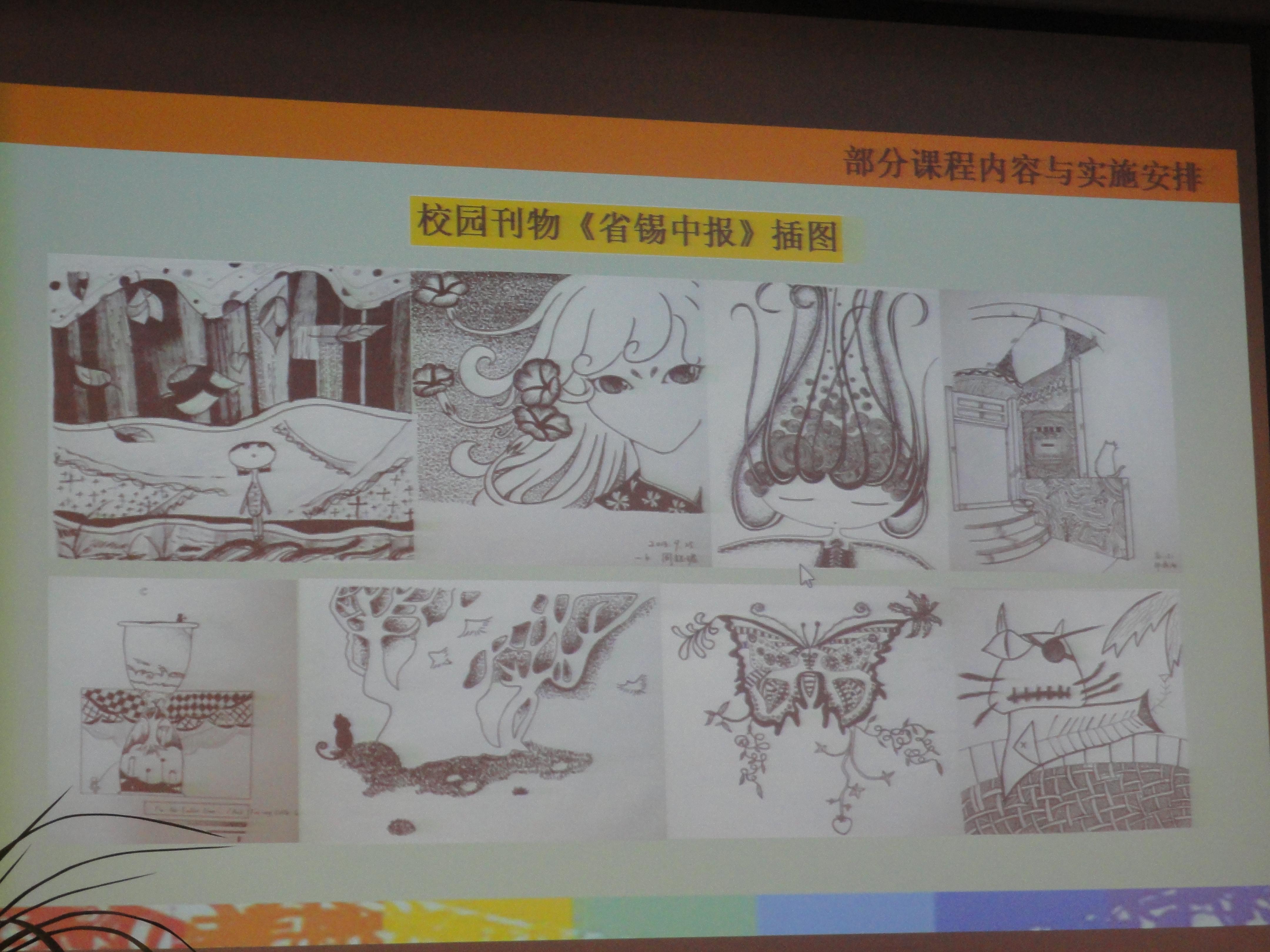 25日下午,陈海莲老师做了题为《高中<心灵插画>校本课程的开发与实施》。从插画的概念、插画课程设立的意义、价值与地位、主要特征、课程目标、课程开发的内容与实施、课程评价与效果等方面进行了阐述。