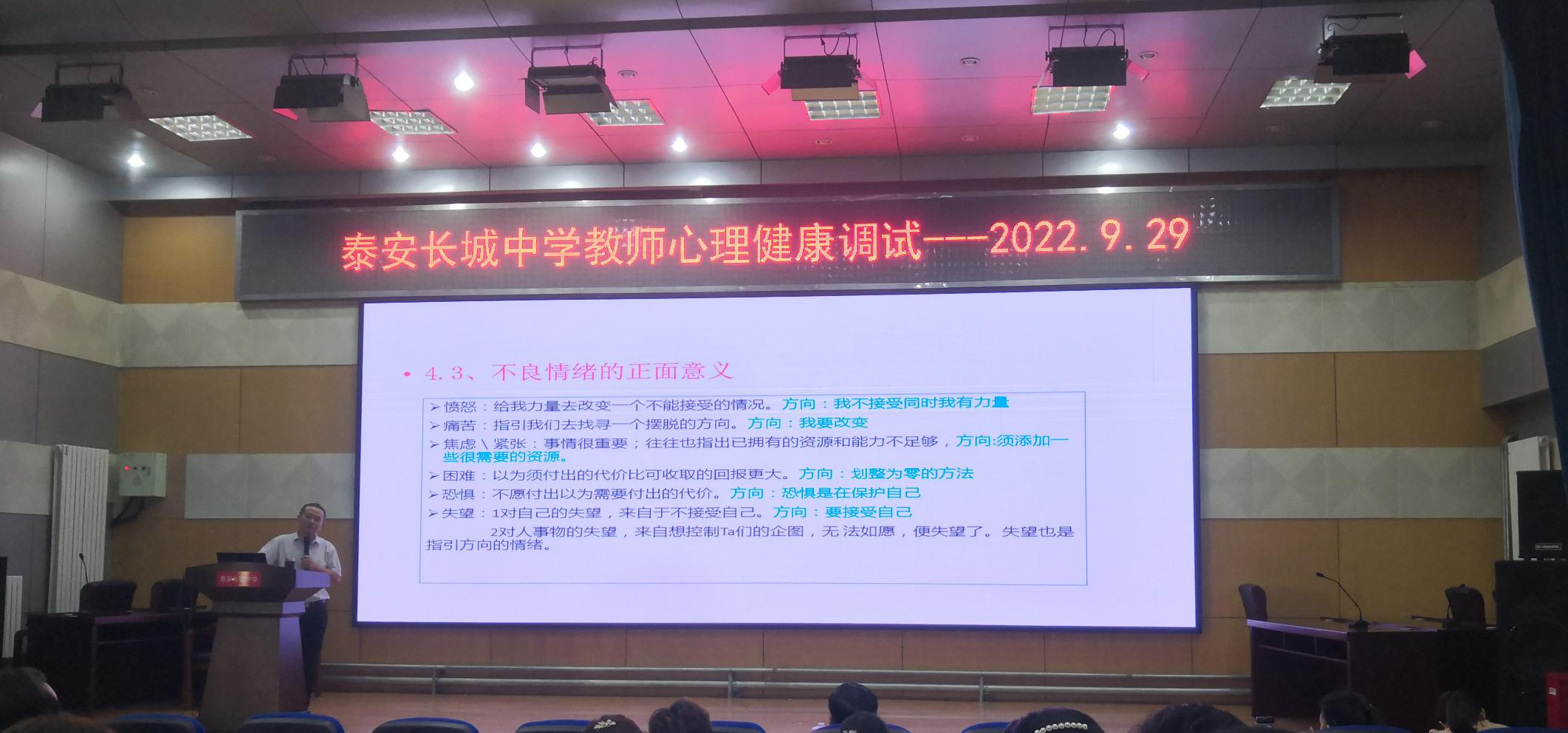 为帮助教师缓解心理压力,提高教师心理健康水平,9月29日上午,德赢天下_www.vwin01.com邀请泰安市心理学会会长肖建光作“从心开始 轻松工作”专题讲座,高一高二全体教师参加。