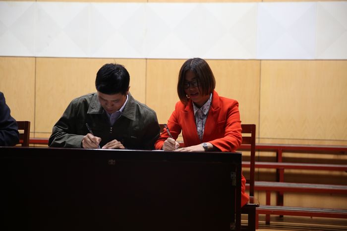 会议第一项由副校长张万泉同志宣读青蓝工程师徒结对名单,第二项由课程中心主任徐春华同志宣读青蓝工程师徒的职责和要求,第三项举行师徒结对签字仪式,第四项由徒弟和导师代表分别发言。赵婷婷代表所有新任职教师发言,表示在导师的带领下,虚心求教,认真钻研,全心付出,尽快成长为优秀的教师。导师代表庄庆福老师表示,自己将切实起到传、帮、带作用,并与新教师一起成长。