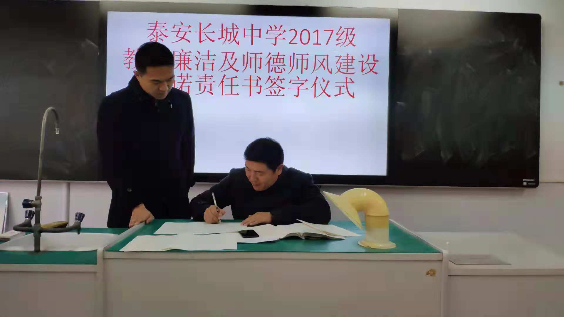 会上,高二年级主任王磊组织全体教师认真学习《中小学教师违反职业道德行为处理办法》《泰安市教师行为十不准》等文件精神,深入浅出的结合www.vwin5.com教育的实际情况,告诫每位教师要遵纪守法、爱岗敬业、廉洁自律,争做人民满意的好老师。同时,与每位教师签订“教师廉洁及师德师风建设承诺责任书”。