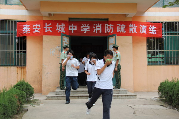 6日下午,当高一新生正在学生公寓休息时,突然警铃响起,学生公寓某楼层发生火灾,并迅速向各楼层、房间及周围蔓延。高一各班主任提醒各位同学不要恐慌,不要跳楼,不要拥挤,要用湿毛巾捂住口鼻从楼梯有序疏散。与此同时,政教处各位老师迅速到公寓各楼层和安全出口引导学生安全疏散。十分钟内,学生疏散完毕,老师们又对各楼层逐一检查,看是否有人员被困。
