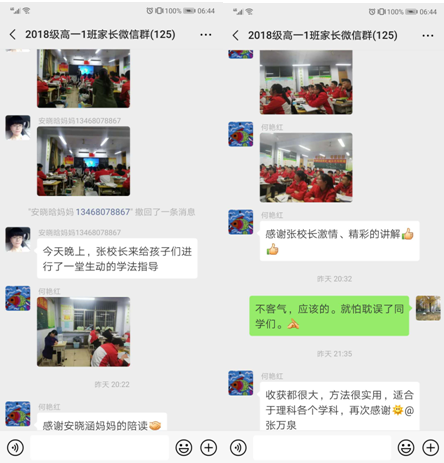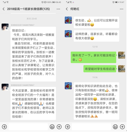 感谢晓涵妈妈如此详细的记录了当晚的场景。根据学生的反映,班级部分同学的化学学习有些吃力,学习委员建议能否给予化学学法指导,恰巧周六张校长值班,所以,非常幸运的邀请了张校长走进班级,给同学们讲课。