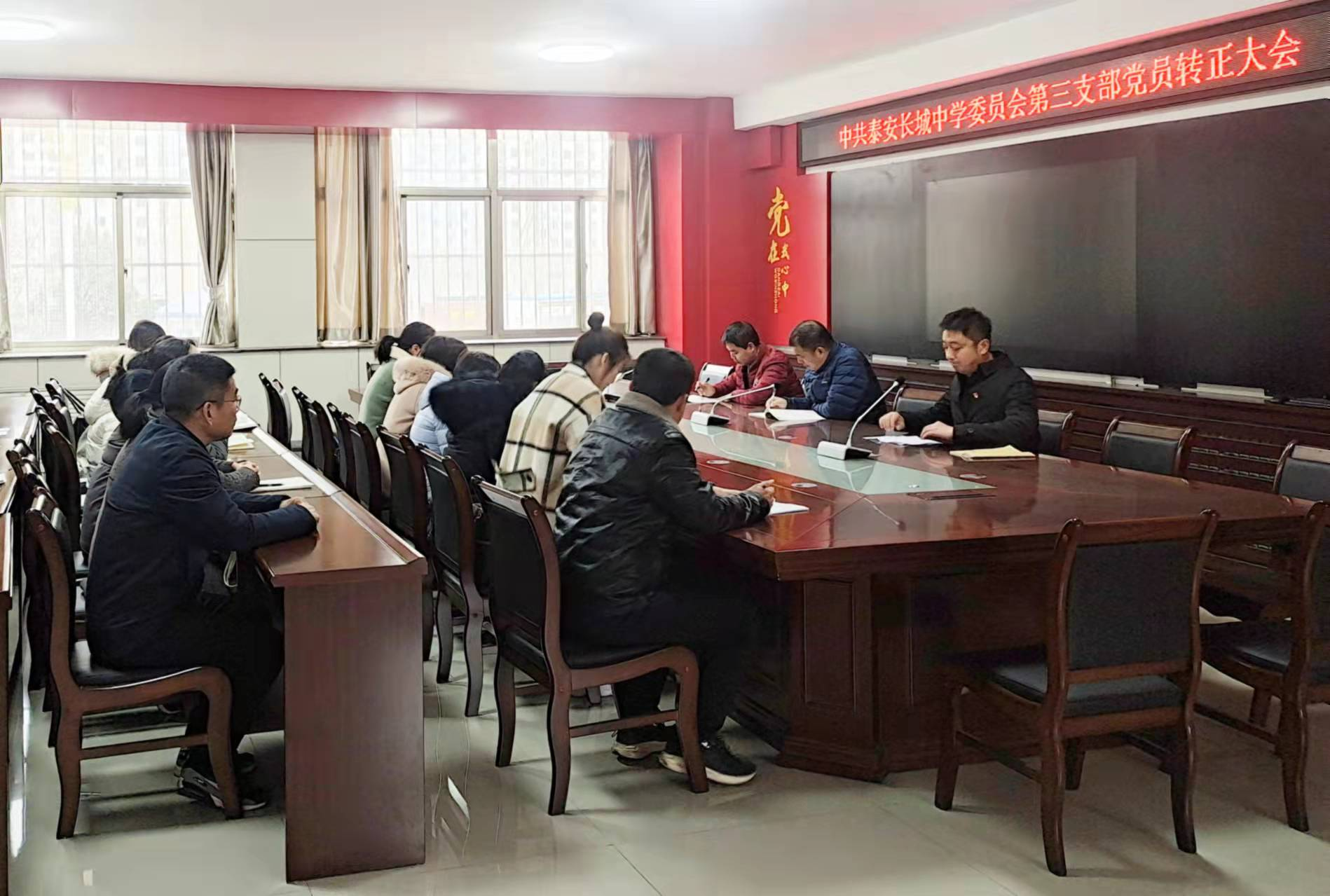 3月17日上午,第三党支部在逸夫楼一楼党员活动室召开预备党员转正大会。会议由支部书记范新国同志主持,党委委员、副校长张万泉参会。