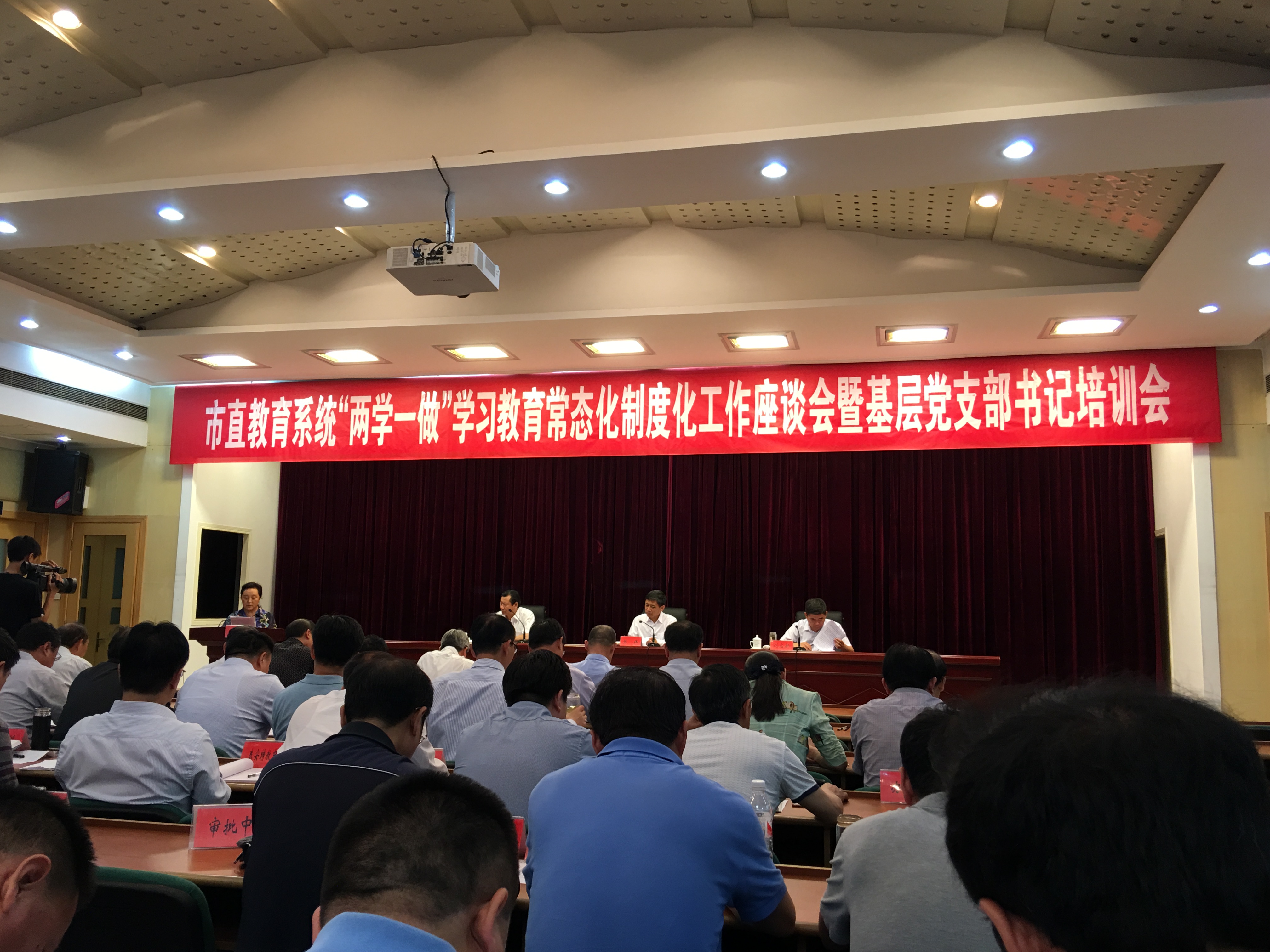 2017年5月23日上午,在市直教育系统“两学一做”学习教育常态化制度化工作座谈会暨基层党支部书记培训会上,www.vwin5.com党委书记、校长王祖丽作“两学一做” 学习教育工作经验交流。交流要点如下:
