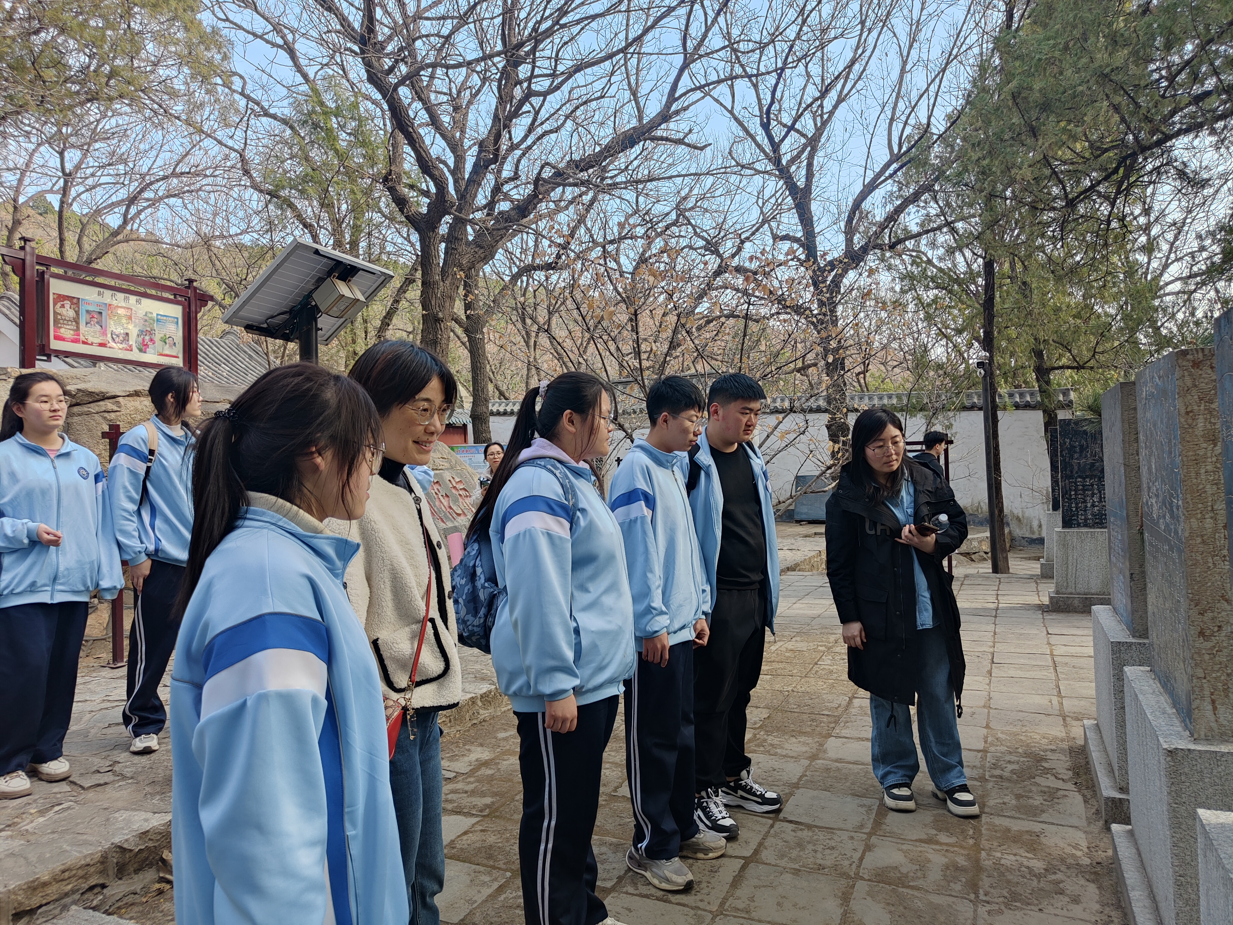 在探寻千年古寺的活动中,同学们对馆内的48块诗画碑产生了浓厚的兴趣。语文组教师通过指导同学们分组识读碑文、体悟诗情,感知冯玉祥先生唤醒民众积极抗日、教导百姓科学知识、号召国民振兴富强的拳拳赤子之心,提升同学们的阅读体验。