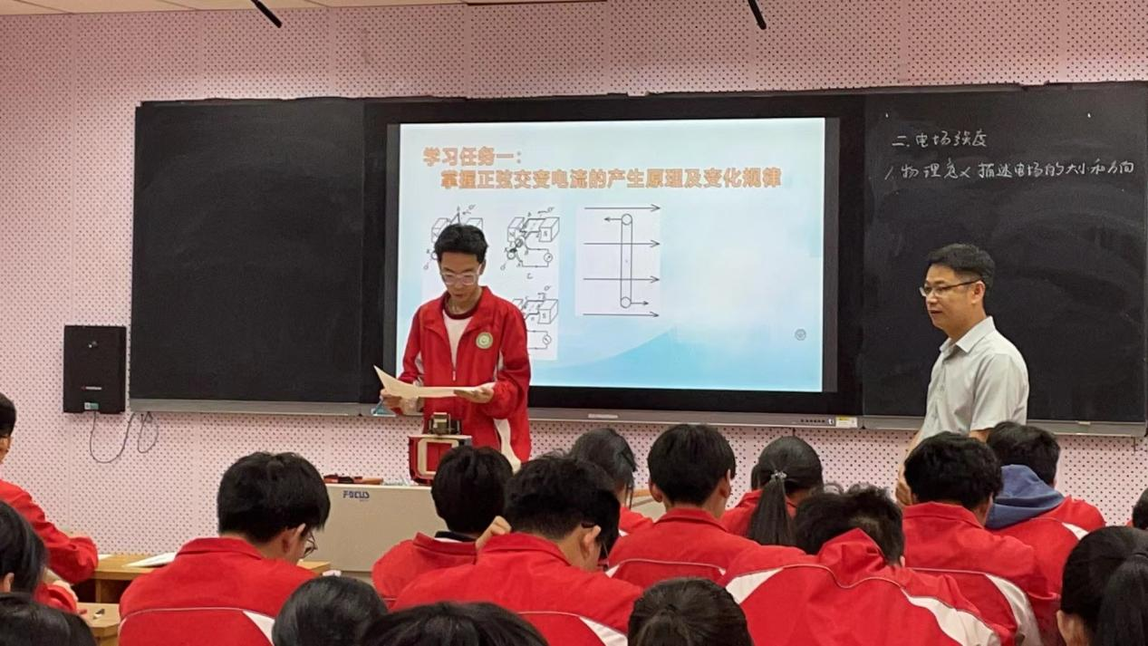高一唐凯老师执教基于新课标的示范课《电场和电场强度》,高二冯晓老师执教基于大单元教学的示范课《交变电流复习》。两位执教教师结合日常生活中的现象,创设物理情境,均充分发挥学生主体地位,以问题为主导,在合作探究及实验探究中实现学生学习能力和学科核心素养的提升和发展。