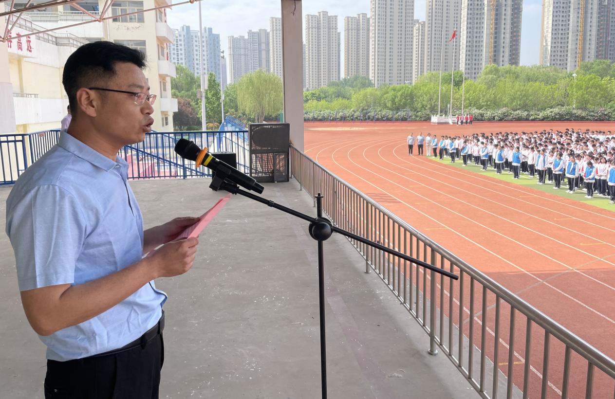 上午,全校师生在操场举行主题升旗仪式,高二年级主任冯晓作国旗下讲话,勉励广大青年学子始终牢记习近平总书记的嘱托,积极传承劳动精神,弘扬五四精神,将青春理想与精进学业、苦练本领相结合,与崇尚劳动、躬身实践相结合,努力成为德智体美劳全面发展的社会主义建设者和接班人。