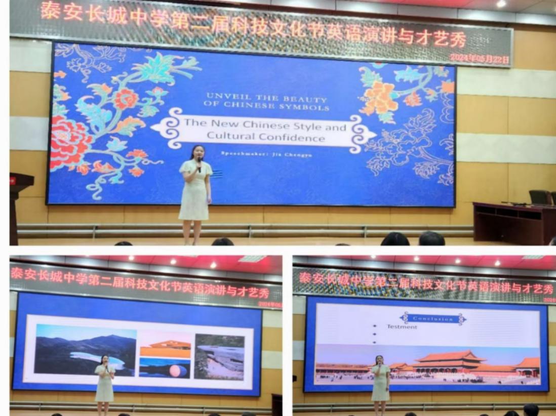 演讲The song of peace, play the world,将同学们对和平之歌奏响世界的美好祝愿表现得淋漓尽致;《我们选择为未来而努力》中,同学们用铿锵的语言表达着新时代青年以昂扬向上的斗志迎接未来挑战的坚定信念;《新中国式与文化自信》探讨新中式风格及其体现出的文化自信,强调在全球交流中保持开放心态、尊重多元文化价值的重要性。
