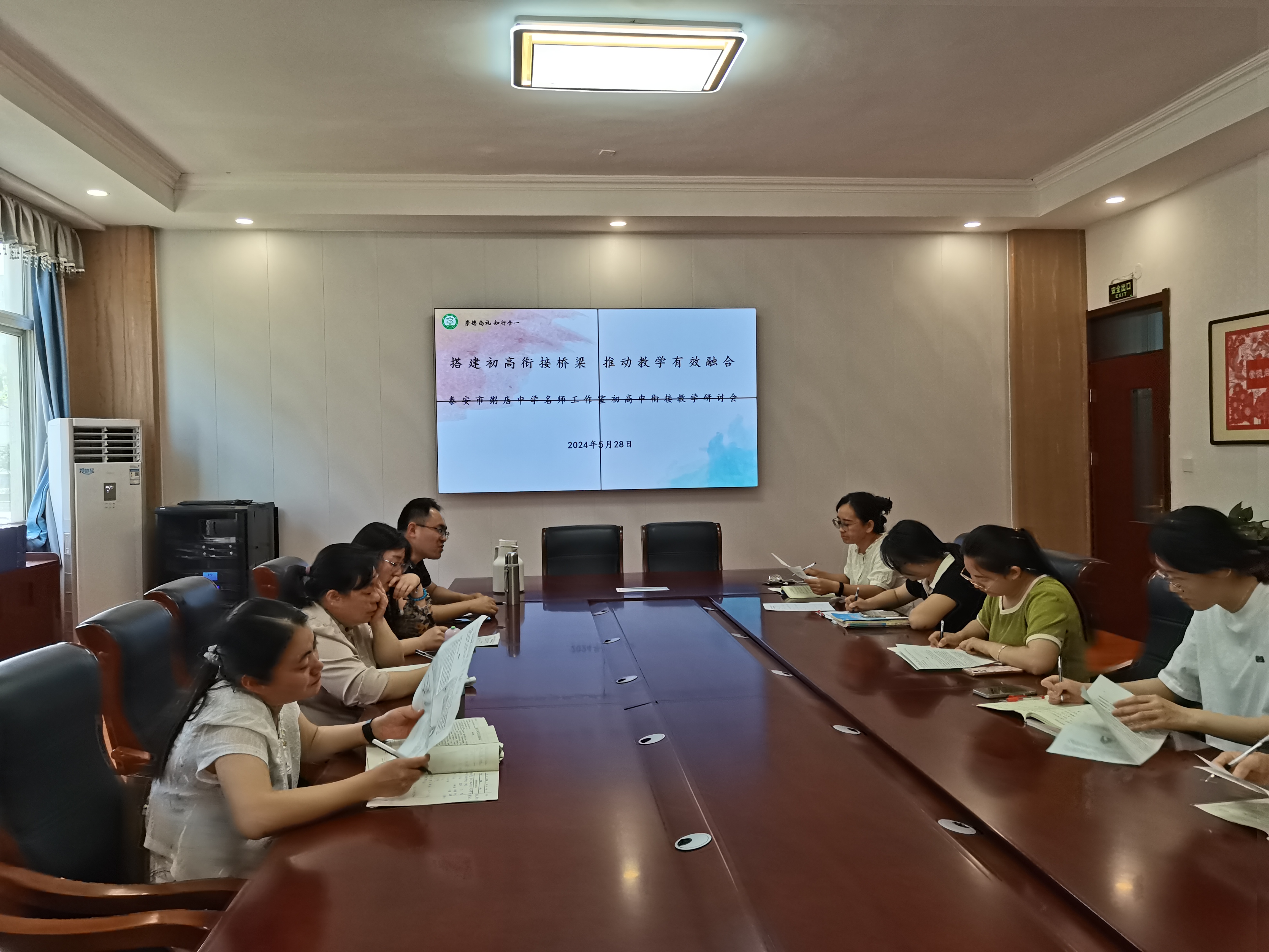 为进一步加强初高中校际间的交流与合作,持续打造衔接课程,5月28日,德赢天下_www.vwin01.com语文教研组张华、高飞、申燕、赵昌龙等4位教师再次前往粥店中学开展初高中衔接语文学科研讨活动,粥店中学六七八年级语文骨干教师参会。