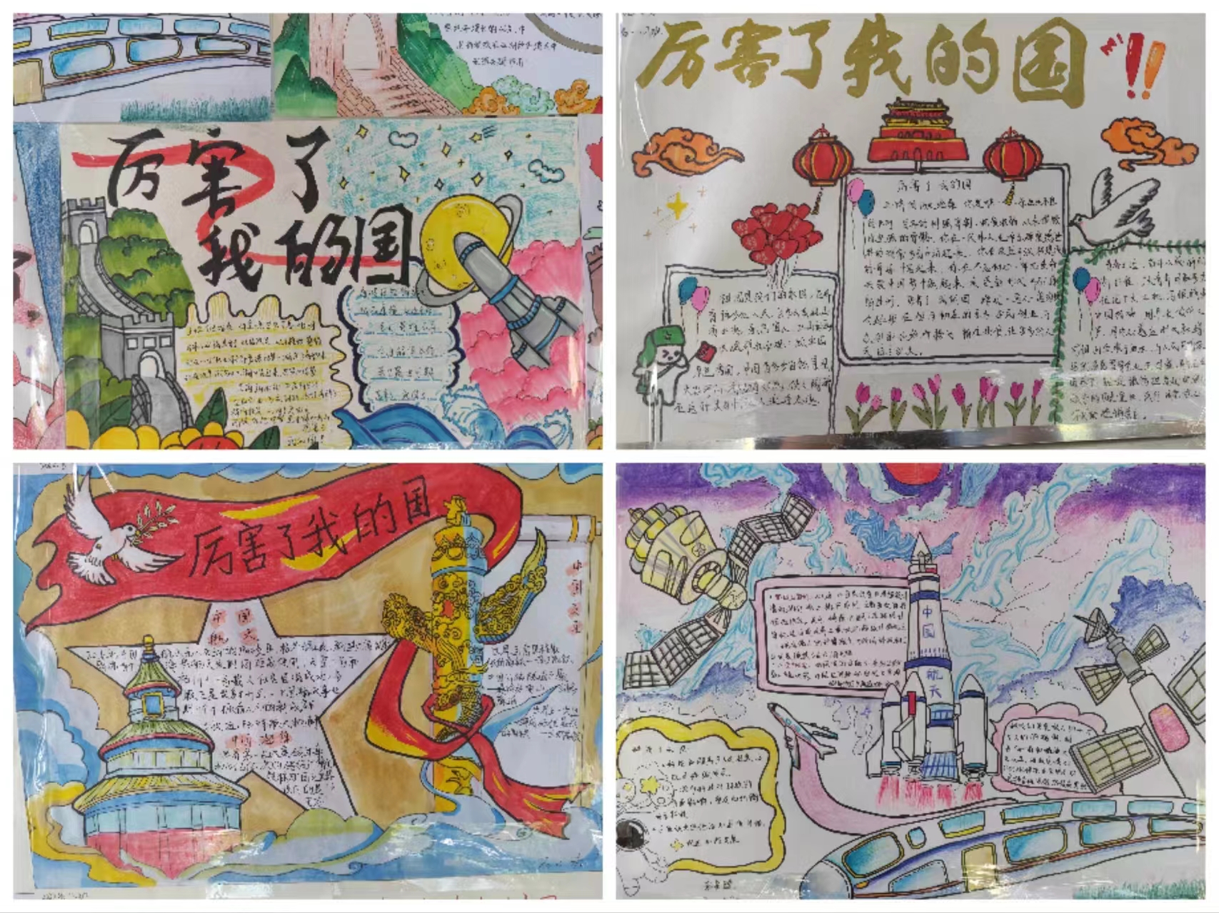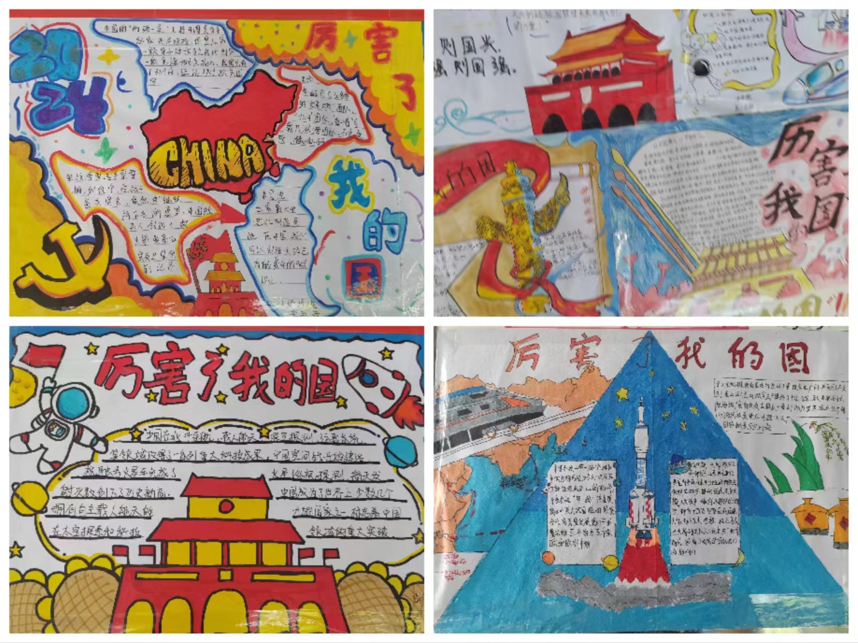2022级学生充分发挥想象力和创造力,“我手绘我心”,用手中的画笔精心描绘出对祖国的热爱、对强国的追求以及对未来的美好憧憬。他们通过色彩斑斓的画面、生动形象的文字,展现了当代青少年的爱国情怀和担当精神。