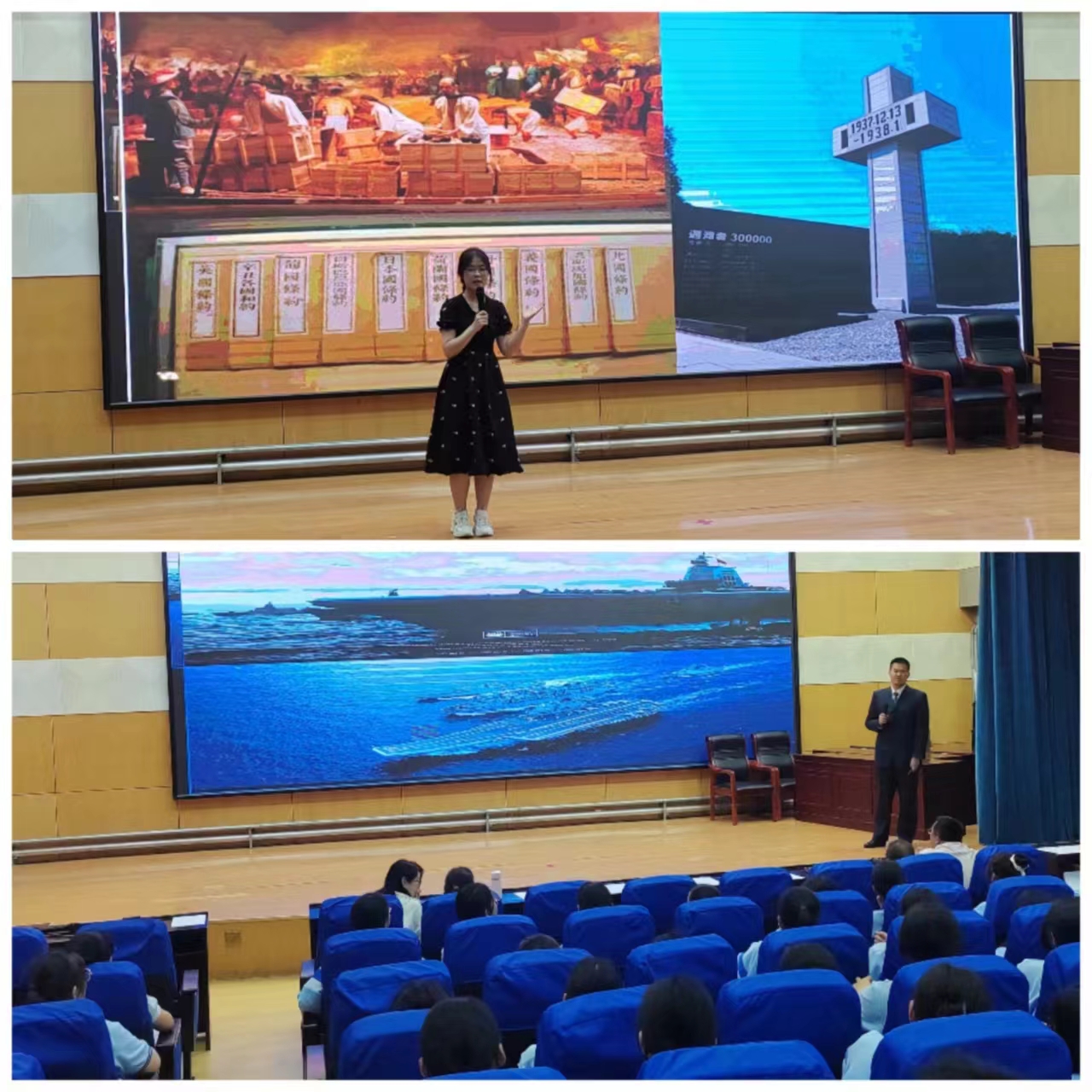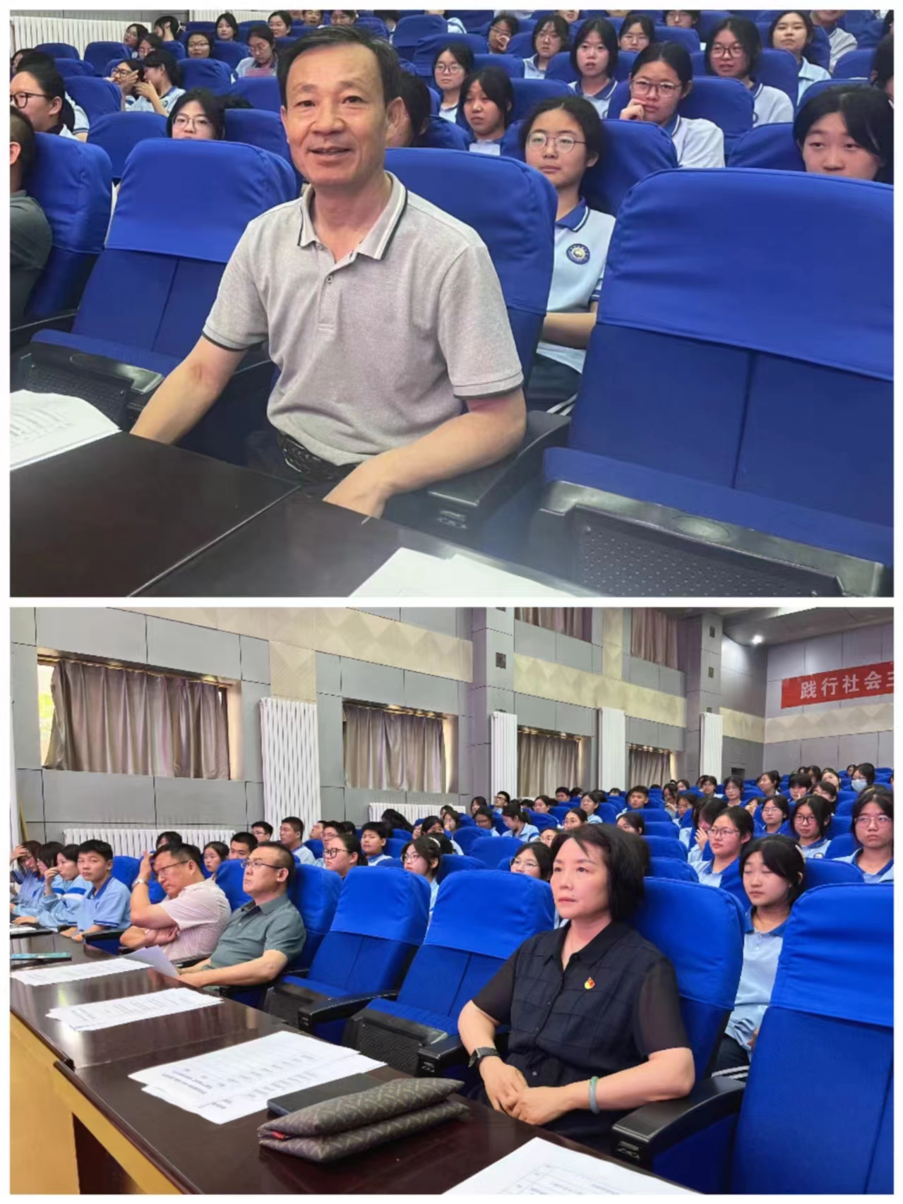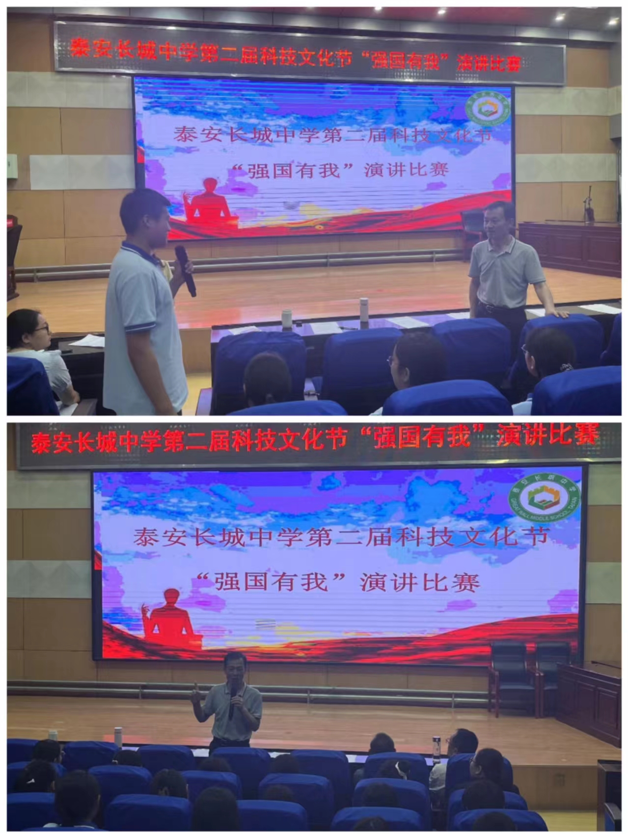 2023级学生进行“强国有我”演讲比赛,全体政治教师参加,校长刘庆良、副校长陈佳敏跟进指导。