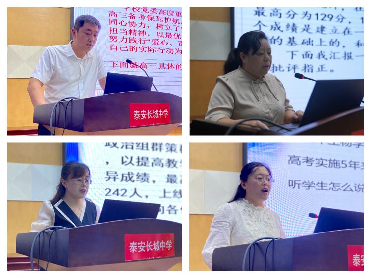 高三年级语文备课组长张华、政治教研组长陈小娟作为学科代表总结备考工作。她们从备课计划的制定、教育教学任务的落实、课堂实施的反馈等方面进行交流,为新高三复习备考工作提供了丰富的借鉴。生物学科教研组长陈燕就加强高考研究、促进教学考衔接作报告,深入研究高考题的考查要点和命题走向,准确把握课程标准和评价体系,制定下一步教育教学工作计划。