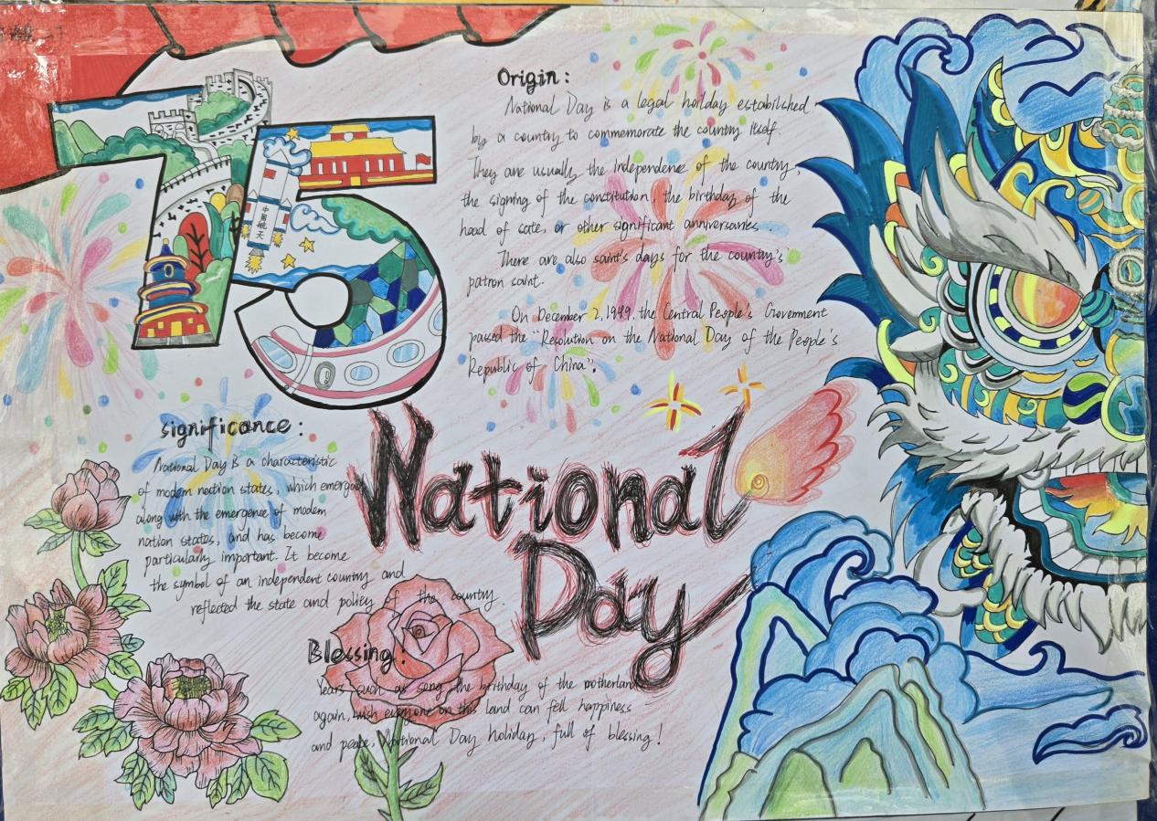 爱国情怀,薪火相传。通过手抄报的制作与展示,同学们不仅提高了英语应用能力,更体现出对祖国的热爱与祝福,爱国情怀在校园里生根发芽。
