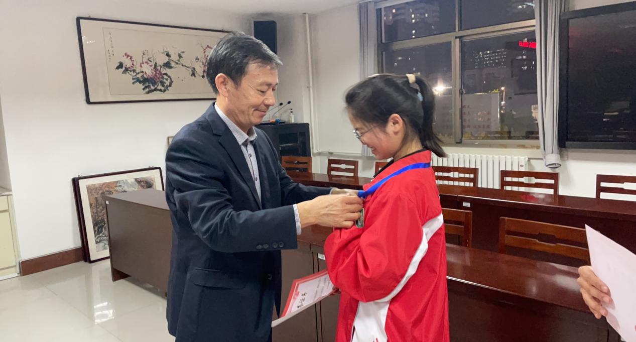 刘校长为6位学生校长助理颁发聘书和工作牌,并合影留念。