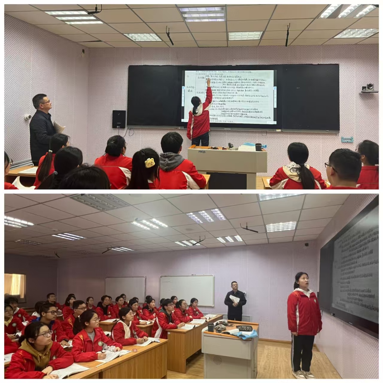董涛老师依照课标要求,以法治中国建设为主线整合教材内容,通过课前学生讲题小演讲和教师领学党的二十届三中全会报告导入课题,课堂教学紧紧围绕三个核心知识点精讲点拨、精选习题,并以问题引领课题,引导学生大胆上台展示,充分发挥学生的主体作用,激发学生的学习热情,培养学生的独立学习能力,点燃学生的思维之花。课堂上董老师特别注重发挥思政课德育主阵地的作用,创新思政首课教学模式,首课“育人为首”的理念贯穿教学始终、前后呼应,很好地达成了预设目标。