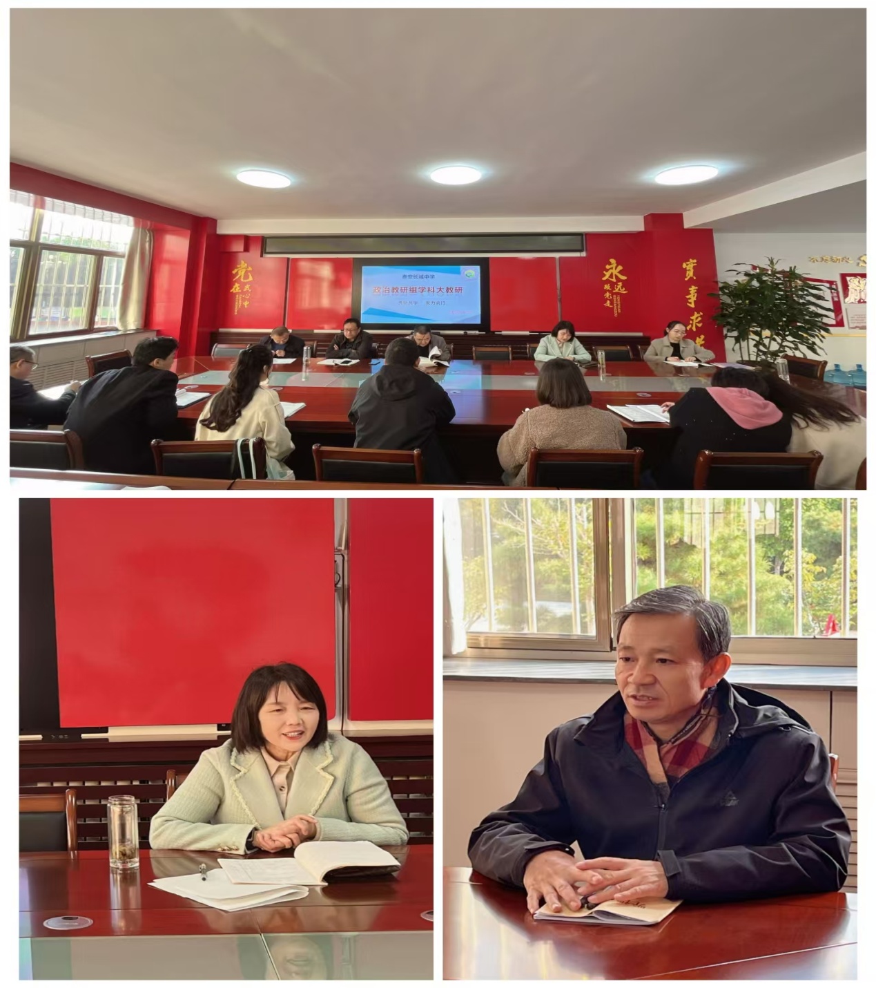课后董老师分享了自己的的教学设计并对课堂进行反思。组内教师围绕高效课堂模式构建、大单元教学等内容,从首课设计与实施、教学目标的预设生成、教学重难点突破、教学活动设计、教学方式选取、学生参与度等方面对董老师的课进行评议并提出建议。李金玉老师代表高三备课组分享高三年级一轮备考计划思路并进一步梳理复习课的基本课堂模式。
