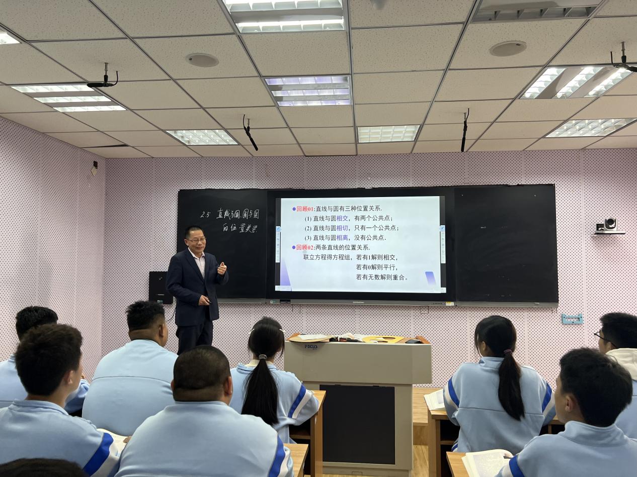 王文庆主任展示高二数学新授课《直线与圆的位置关系》。首课环节由学生介绍生活中的直线与圆,以实物展示直线与圆的位置关系,形象生动,设计新颖。整节课紧扣学习目标,任务明确,教师循循善诱,充分调动学生参与课堂的积极性,指导学生规范答题,带领学生轻松突破难点知识。