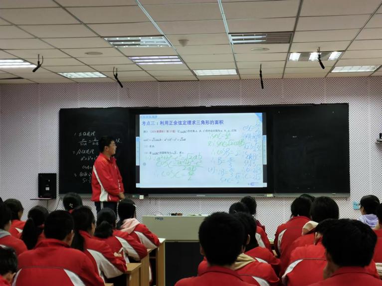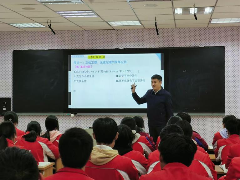 张涛老师展示高三复习课《正弦定理与余弦定理》。张老师从典型问题入手,注重数学思想的渗透,由点及面,运用多种方法开拓学生思维,学生积极参与课堂,在做高考题的过程中,获得学习的信心和成就感。