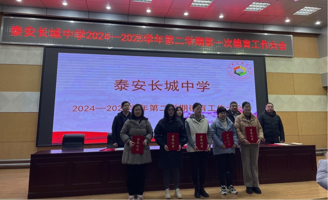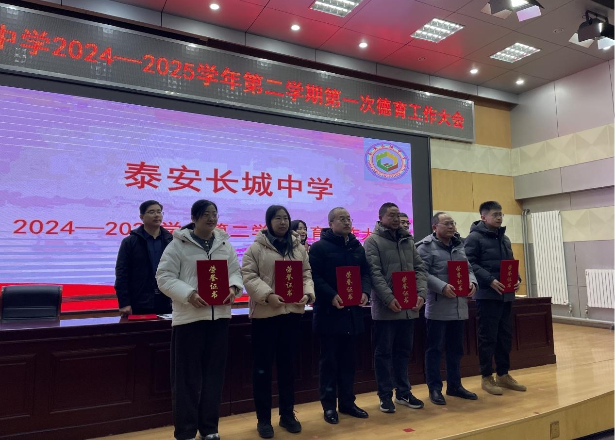 政教处主任王磊宣读了上学期班级量化先进班主任,并依次颁奖,对在过去一学期工作中表现出色的班主任予以表彰,激励全体德育工作者向先进学习。