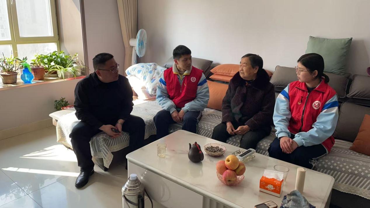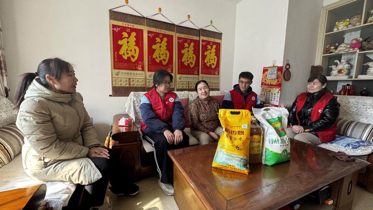 二组学生带着米面油走进独居老人家中。“奶奶,这是我们学校的一点心意,祝您健康!”同学们紧挨老人坐下,老人拉着学生的手感动地说:“看见你们,就像看见自家孙子孙女一样!”