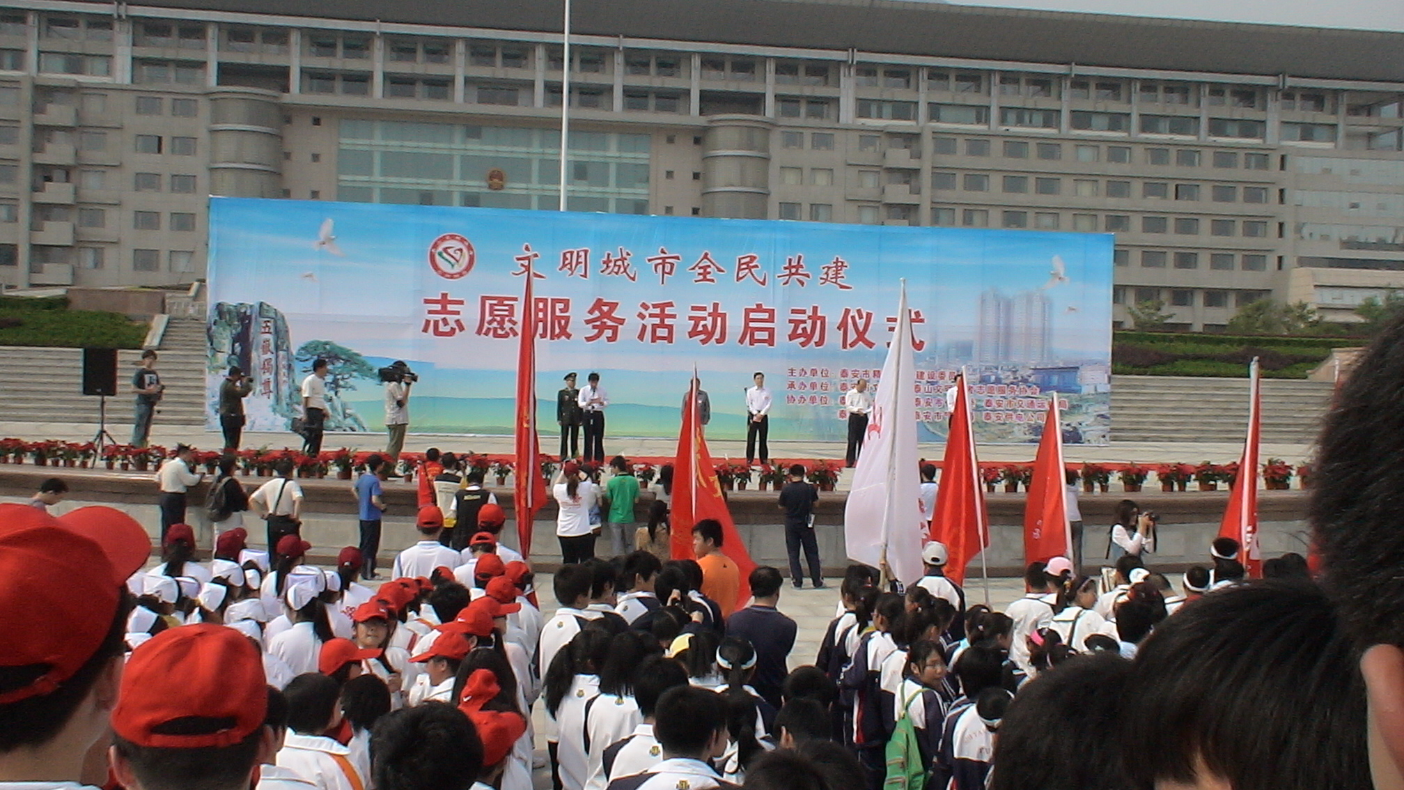 5月15日下午15时,由市文明办组织开展的“文明城市全民共建”志愿者服务行动启动仪式在市政广场隆重举行,www.vwin5.com共有50名团员青年参加了此次活动。通过参加此次活动同学们认识到参加志愿者服务活动的重要性,纷纷表示要积极参加到志愿者服务活动中去,做一名合格的志愿者。