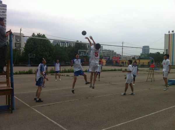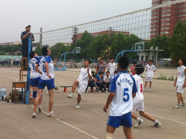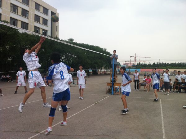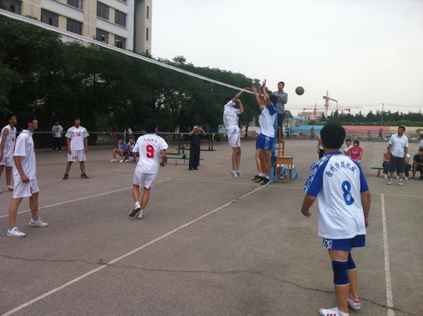 为迎接2012年泰安市中小学排球联赛,进一步提高www.vwin5.com排球运动技术水平,艺体处于6月26日下午特邀请山东科技大学泰山科技学院排球队和www.vwin5.com排球队进行一场友谊赛。通过这次比赛,锻炼了队伍,增强了友谊,积累了比赛经验。