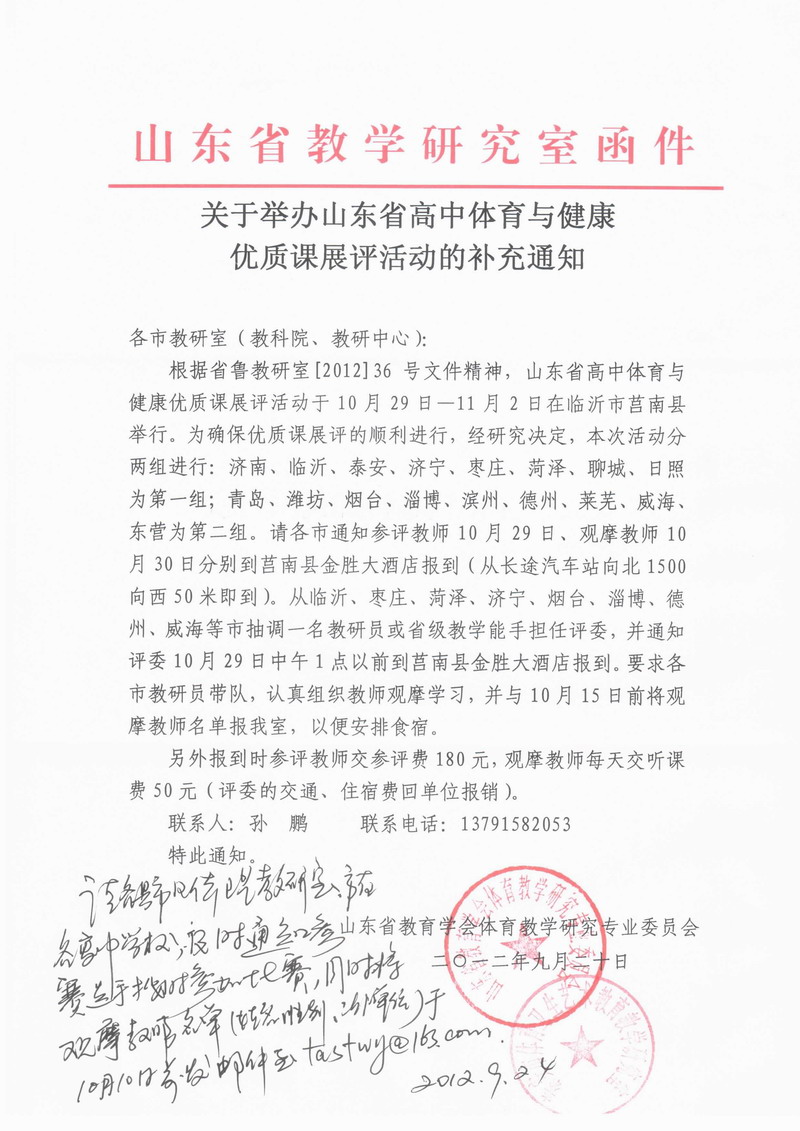 关于举办山东省高中体育与健康优质课展评活动的补充通知