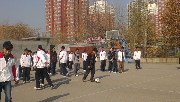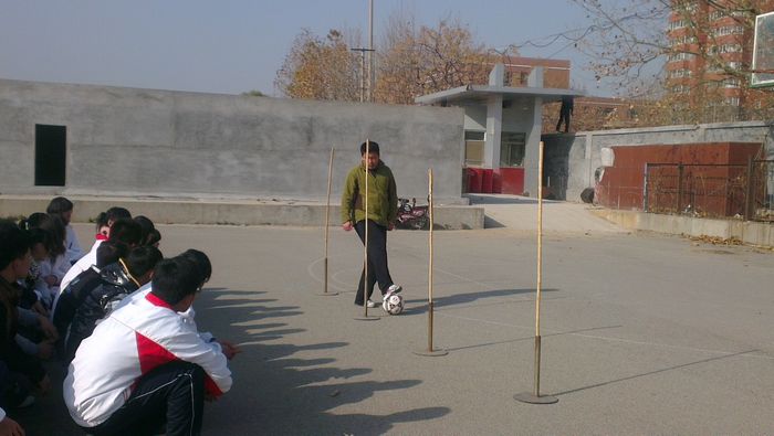 为更好地完成《2012年国家学生体质健康测试》的数据采集,根据市教育局体卫艺教研室的统一要求(足球为必测项目),本周二上午第三节,体育组武鹏老师上了一节“足球运球过杆”的公开课,体育组全体教师参与听课和课后评课,取得良好效果。